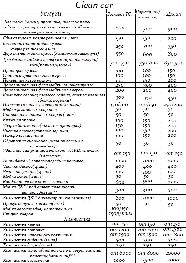 Первый раз приехал на мойку дали 2 карты на 50% скидки на следующие мойки .цены не дорого химчистка салона не дорого .Ребята молодцы на 5 + работают .Рекомендую