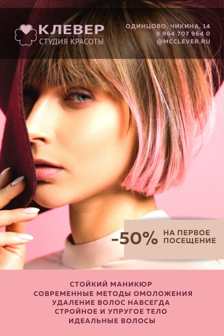 Прекрасный сервис! Доброжелательные девочки! Раньше ходила за разными мастерами в разные салоны. Но в студии Клевер нашла всех и можно не терять время на разъезды по городу! Могу поделиться списком мастеров которым я доверяю! Шикарный маникюр и педикюр у Натальи! У Оксаны ручной массаж и LPG! Стрижку, окрашивание и укладку у стилиста Надежды Жуковой, модное окрашивание в технике аир тач, результат просто поразил! Вау! Всем очень рекомендую . Девочки, спасибо Вам огромное за красоту и радость которую Вы дарите!