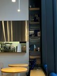 Изначально шла в другое заведение на параллельной улице (как оказалось, более оживлённой), но ввиду отсутствия свободных столиков пришлось искать что-то более уютное. Выбор пал на более тихую Донскую улицу. Издалека увидев синие бочки с растениями под синим шатром (цвет настроения - синий😂), захотелось зайти внутрь. Внутри - продолжение интерьера в лаконичном, кобальтовом стиле. Было несколько свободных столиков (наконец-то🙏), и это воскресный день;) Брала капучино и кокосовое фитнес-печенье. Всё очень вкусно, правда, позиции в меню мне показались всё же завышены, хотя спрос рождает предложение😉