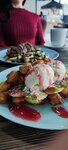 Очень милое кафе у дома - разнообразное меню , готовят достаточно быстро, официанты вежливые . Чисто , уютно , вкусно ! Бельгийские вафли вообще топ 10/10 . Так же , имеются блюда на мангале - что является очень большим плюсом .