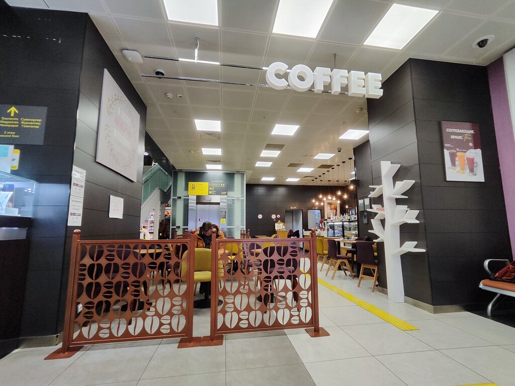 Кофе ужасный, своей цены вообще не стоит, лучше взять в автомате. Так же, если вы буквально один присядете в данном пустом заведении или не дай бог подключитесь к розетке с целью зарядить свой телефон, к вам незамедлительно прибежит персонал, то ли ушлый то ли от обиды будут требовать вас что-то купить, а иначе начнут выгонять. Вообщем, что еда, что напитки напрямую зависят от отношения к работе персонала, а исходя из данной ситуации результат очевиден. Видимо зарабатывают только при ситуации час пика и нехваткой мест ожидания в зале, но ни прикаких условиях, в почти пустом зале не дадут вам спокойно посидеть в ожидании рейса. Выводы делайте сами