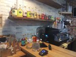 Впервые зашёл в эту кофейню, потому что близко от работы. Полностью coffee to go (посидеть можно только на лавочке перед кофейней, но я пришёл в дождь). В самой кофейне есть небольшой стол, на который можно поставить кофе, но сесть негде. Но кофейня уютная, мне понравилось приятное освещение (яркое меню удобно читать), оформление стен (отдельно порадовала стопка книг на полке, можно полистать за кофе). Написано, что кофейня с десертами, но я не нашёл ни одного. Хотя кофе вкусный (взял авторский "Хвойный бум", нигде такого не встречал). Прямо реально ощущение, что добавили хвою и древесину с кофе в стаканчик, очень необычно и прикольно. По возможности, ещё приду пробовать другие напитки.