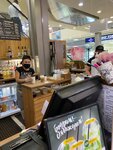 Атмосфера никакая, в 5 метрах, напротив стоят кассы супермаркета Еда, народ, который рассчитывается перебивает своими запаха и аромат кофе. Нет отдельного знания, кофейня без стен, просто пятачок, где некуда присесть. Шумно от многолюдной толпы. Очень были разочарованы. Советуем выбирать Anytime по другим адресам. Здесь неудачно расположено место отдыха. Логистам огромный минус.