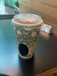 Кофе очень средний. Бариста плохо закрыла стакан с горячим кофе, и я облилась горячим кофе, платье в кофе прям перед важной встречей - испорченные платье! И отмененная встреча. Крайне разочарована. Более того чаевые автоматически списались. За такой сервис чаевые не оставляют.