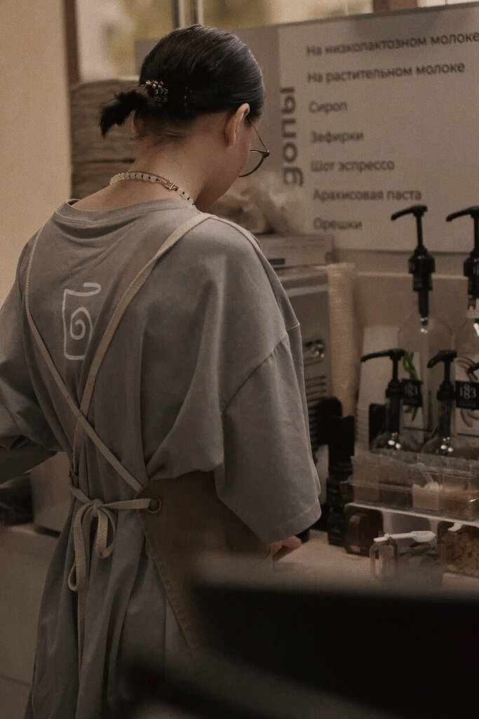 девушка с обворожительной улыбкой сориентировала меня по напиткам, рассказала об авторских новинках. Быстро приготовила кофе, спасибо ей большое :з интерьер супер, была приятно удивлена тому, что кофейня есть теперь и в Урале 🎉