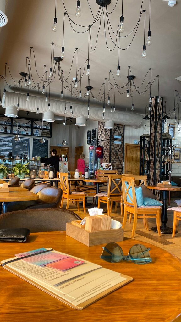Забегали в данное кафе позавтракать. Кафе интересное, с живым уголком в виде попугаев. Очень тихих, прям необычно! Хотела попробовать картофельные вафли, но их не оказалось. Потом выбрала что-то еще с картофелем, тоже не было. Из картофеля был только фри 😂 ну и ладно, будет повод вернуться, надеюсь к тому моменту они появятся . Кофе раф мятный- это божественно. И «большой завтрак»- тоже вкусно! Интерьер кафе симпатичный, официанты внимательные и приветливые.есть летняя веранда с Видом на реку.