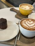 Вкусный кофе, на капучино всегда красивый узор. Круассаны недурственны. Неожиданно понравились сырники с лососем. Несладкие и вполне сытные. Приветливый персонал.