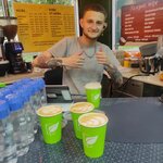Отличная кофейня, шикарнейший бариста. Беру кофе только у этого парня. Вежливость на высшем уровне, профессионала видно сразу. Раньше не пил кофе с молоком, т.к не люблю молоко вообще, но решил попробовать именно у него, вышло просто шикарно. Быстро, вкусно, бодряще, всё на высшем уровне.