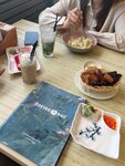 Изредка заезжаем сюда перекусить. Вообще здесь очень вкусно готовят жареный сыр: почти всегда его заказываем и пате из говяжьей печени с чиабатой и смородиновым соусом - настоятельно рекомендую попробовать! Помимо основного меню. Вчера брали тушеную говядину по-бургундски - чуть жестковато мясо, несмотря на мелкую рубку, в целом - вкусно. Суп мисо - вызвал восторг у человека работающего с паназиатской кухней и поклонника корейской. Понравились роллы и вырезка свиная с ягодным соусом. Из сладкого заказывали: яблочный штрудель - тоже вызвал восторг, чизкейк нью йорк и маковый торт, молочный ванильный коктейль, цитрусовый раф и чай. Все вкусно, но ребенок не оценил цитрусовые ноты в классическом чизкейке, расстроилась, тк были ожидания просто классики вкуса. Подача блюд - как на фото в каталоге, что приятно. Время приготовления и выдачи блюд 15-20мин. Очень понравилась девушка-официант Алина.