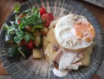 Бриошь, семга, микс салата, яйцо пашот, соус голландез