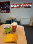 Вкусный кофе, милая девочка сделала отличный раф. Взяла с собой дрип-пакетики коллегам на подарки, им понравилось тоже. Можно сделать побольше выпечки к кофе. Стаканчики невероятно красивые, создают настроение!