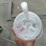 Милая девушка-стажёрка сделала очень вкусный малиновый бабл ти и написала комплимент на стаканчике. Я в восторге 🥰