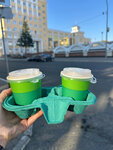 Всё вкусно, но обратите внимание на два нюанса: 1) Горячий кофе в чашке без ручки. Зимой это будет даже плюсом, но летом – горячо, держать некомфортно. 2) Заказ на троих, подаётся отдельно 1 чашка на 1 мини подносе. Логичнее всё же давать 1 большой поднос, чтобы не нужно было всем гостям прибегать от столика за заказом, который спокойно может принести один человек, будь у него упомянутый поднос.