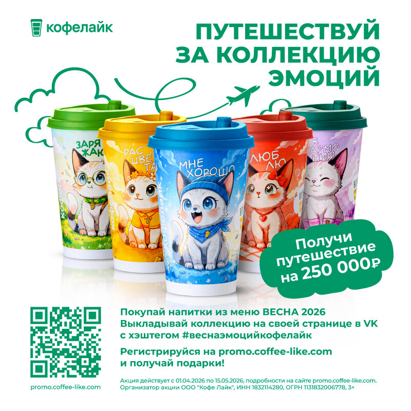 🎁Встречайте весну с новыми эмоциями и вкусами! Выполняйте условия и забирайте подарки: 1⃣ Приобретите любой напиток из меню «Весна 2026» ...