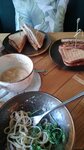 Очень долго несли заказ( С кофе проблем нет, брали раза 2 -3 с собой, все ок. Но суп с морепродуктами ждали 35 минут, гребешки как резина, совсем не жуются( Сендвич с тунцом в котором тунец и жареное яйцо ждали 40!!! Минут. Ребят ну это очень долго в обеденное время( Если на кухне много заказов, предупреждайте сразу заранее. Чтобы не тратить наше время на ожидание(
