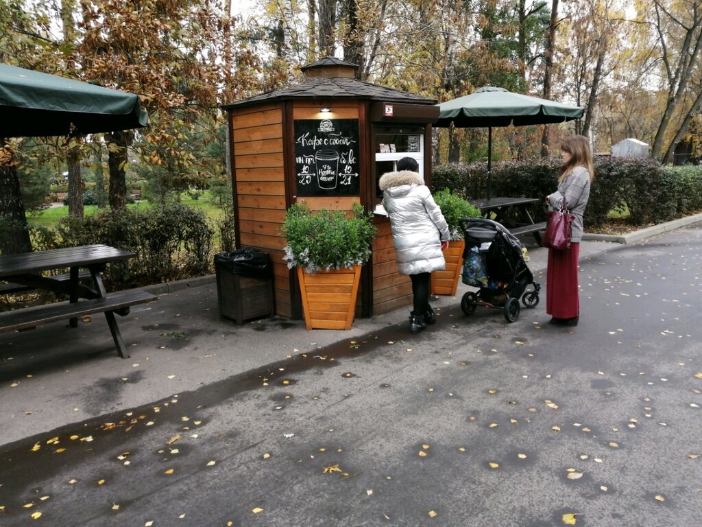 Очень странно, что здесь нет отзывов, ведь это единственная кофе-станция в парке, и там почти всегда очередь. Кофемашина тут отличная, молоко есть альтернативное, выбор большой. Есть вкуснейшие горячие напитки: мы брали малину и имбирь, и чувствовались прям кусочки имбиря, а не просто ароматизатор. Также много всяких печенек и шоколадок: но я советую пончики с орехами :)