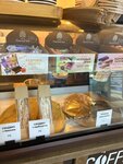 Работаю в этом здании, каждый день забегаю за кофе, очень хороший!! На витрине вкусняшки, особенно конфетки с кедровыми орешками, бариста приятные, есть салфетки, антисептики, в общем все удобства