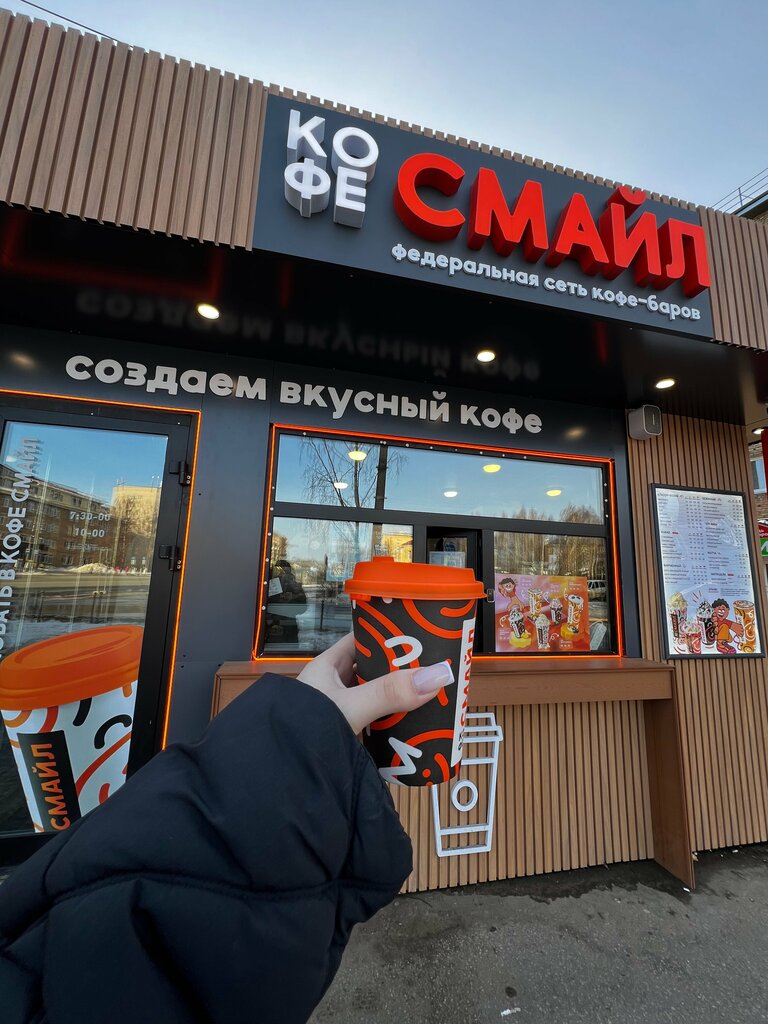 самый вкусный ассортимент во всём сыктывкаре. сегодня мы с мамой брали кофе и молочный коктейль. очень приветливая и милая девушка, сделала комплимент моей super cute шапке, мне было очень приятно заказ приготовили буквально за две минуты, если не меньше вкус тоже супер, все очень понравилось, coffee smile is the best coffee shop in town ))