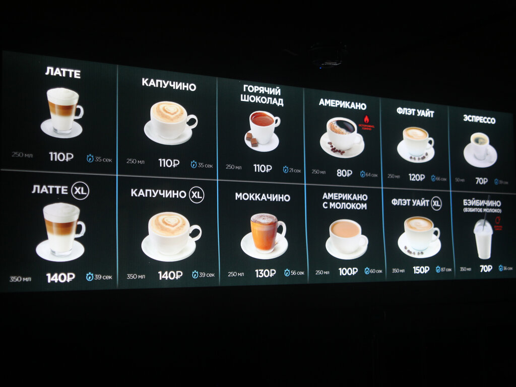 Price cup cappuccino:130–160 ₽