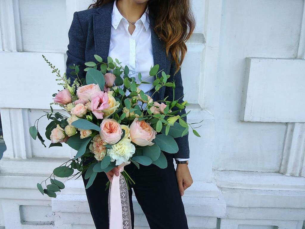Спокойный и нежный букет в бело-бежевых тонах станет прекрасным подарком вашим близким