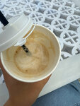 Просто в шоке! Отвратительное обслуживание! Заказала сырный раф, а он не сырный.. ни сырной пенки, нет ничего. Девушка же утверждает что у них именно такая подача сырного Рафа. Так же купила торт Прага, вышла за столики, хотела поесть, а он искусственный! Это как?! Как вообще работник мог положить муляж вместо настоящего торта?! С устоем, что замену она сделала, а эти торты уже в индивидуальных контейнерах! Ну и собственно 2 кофе ждали минут 15 точно! На фото мой «сырный» раф! Жаль торт пластиковый не сфоткала! Такого я еще точно нигде не встречала!