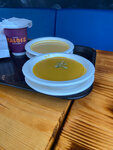 Для кофейни в парке очень высокое качество..Сегодня бала здесь второй раз.Чисто, вся мебель как новая.Да,посуда одноразовая,но упакованные индивидуально приборы в открытом доступе.Брали суп -пюре сырный и тыквенный.Тыквенный очень достойный.Чебурек пробовала брянский и жюльен.Жюльян :тесто тонкое,вкусное,начинки в меру,хороший состав.Обслуживание быстрое,внимательные работники.Тепло,уютно.Однозначно рекомендую.