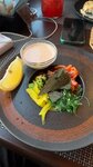 Встретили вежливо усадили по желанию.есть кнопка вызова официанта это плюс, но пока вы на неё не нажмёте к вам не подойдут даже убрать пустые тарелки это минус.меню достаточно большое, винная карта обширна по коктейлям, есть и водка,а вот абсента нет.заказали салаты цезарь с курицей и овощной. соус в Цезаре не вкусный сухарики три тоненьких пяточка сыра кот наплакал.овощной салат нарублен как хряпа огромные куски 2-2см огурец выпотрошен без зёрнышек.заказывали мороженое было предложено в вазочке и в корзиночке два раза сказали подать его в вазочке подали в корзиночке на вопрос официант ответила что не расслышала.интерьер своеобразный старый крашенный кирпич с деревянными пробками,железный швеллер, очень абстрактные картины.а вот уборная на высоте.создалось впечатление что официант не предлагает,а решает за вас что вы будете заказывать.больше не придём и рекомендовать не будем