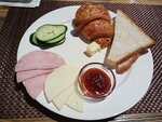 НЕ РЕКОМЕНДУЮ! Для меня 3 принципиальных минуса: 1. Меню без фото и состава блюд. Только текст. Написано: горячая закуска- Жульен. Официант говорит состав: грибы, мясо, сливки, сыр. А приносит ещё и бутерброд с луком. Который, естественно, входит в вес жульена. 2. Не дают воды принципиально! Не фильтрованной, не кипячёной, не из под крана, никакого варианта!, и это при счете от 8000р. 3. Горячее с картофелем 13! вариантов и 2 без картохи - овощи. Выбор сомнителен. Но оказалось, что и овощи наполовину состоят из картошки. Для меня комфортный минимум: время, вода, выбор. Может кому-то это не важно, но для меня это основа. Фото пыли в туалете просто для души.
