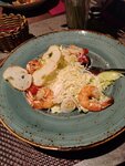 Еда очень вкусная, красивая подача, приятный интерьер. Для нашей большой компании организовали стол. Меню большое-и взрослые и дети нашли себе блюда по вкусу. Мы остались очень довольны. Спасибо