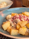Были в Террасе второй раз, первое фото прикреплено от августа, второе от сентября. Это брускетта с грибами в сливочном соусе. Разница видна не вооруженным взглядом. Кухня испортилась, так же заказана была сковорода с мясом, картофель заверенный и в целом блюдо холодное.