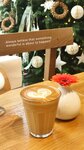 Хороший флэт-уайт - крепкий с густой пеной молока. Хорошая подача, интерьер шикарный - всё на стиле: посадочные места, люстры, ёлки к празднику. Снял балл за цены. Флэт за 750р