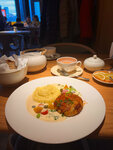Зашла на обед с партнером, заказала грибной суп и судака с лисичками, чай дарджилинг. Суп понравился, судак безвкусный, оформление блюда на троечку, на 1500 совсем не тянет. Официант к блюдам не подал ни соли, ни перца. Салфеток не было. На двоих взрослых, заказавших 2 тарелки супа по 900 руб, приесли корзинку с одним кусочком черного и одним кусочком белого хлеба. Наверное, за хлеб мы должны были подраться. Обслуживание разочаровало. В процессе пытались дозаказать еще один чайник чая - официанта не дозваться, хотя сидели на веранде рядом со входом.