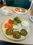 Пришли специально на завтрак. Обслуживание хорошее, девушка на кассе приятно общалась. Заказали тост с авокадо и лососем, добавили яйцо пашот. Я себе взяла кабачковые оладьи с лососем и яйцом пашот. Все принесли быстро, но, к сожалению, просто не вкусно. Я не смола съесть оладьи, так же как и молодой человек, когда попробовал. Яйцо пашот было не пашот у обоих- желток свернулся( В целом заведение хорошее, напитки достаточно вкусные. Но еду, к сожалению, не рекомендую