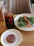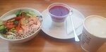 Кофейня отличная! Вариантов напитков множество. Я пью в основном матча на растительном молоке и разные виды чая. Люблю брать десерты без сахара. Лимонный тарт тоже очень нравится, но это недиетический вариант. На ланч брала блинчики с семгой, честно говоря не очень понравился, потому что рыба слишком мелко нарезана, практически не ощущается.