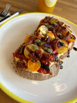 Обстановка приятная, персонал вежливый и расторопный. Меню интересное, есть оригинальные вкусы напитков. Кофе лаванда-черника мне понравился, медовик был слишком сладкий. Над тостом с хумусом я бы еще поработала: сделала бы хлеб более хрустящими, добавила специй (тост пресноват), вместо черри нарезала бы обычные помидоры кубиками, предварительно удалив семена (сейчас половинки черри очень крупные и плюются томатным соком с семенами, если втыкаешь в них вилку). Тост готовили 20 минут - это долго при том, что остальные посетителей уже обслужили, и я была первая в очереди