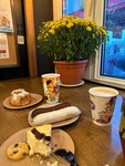 Хороший выбор десертов здесь, я обычно за колечками с творогом и печеньем из кукурузной муки приезжаю, кофе/какао готовят, советую добавить в ассортимент фильтр