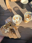 It's a terrible place, the service is low! The change was not given out, it was undesirable to communicate. The donat was given frozen, hard, so it is impossible to eat it, considering it normal. After the remark, they offered to warm it up, warmed it up so that it became impossible to eat at all, all the glaze melted and spread over the walls of the package. We ordered a cold frappe with ice on top, which can only be drunk with a straw. There were no tubes in the establishment, there were a couple of pieces without individual packaging, standing at the entrance in an open form. The sausages in the dough look like they've been sitting for days. They couldn't eat it either, so they had to throw it away. The coffee ended up in the trash too! It's a terrible place, close it!!!