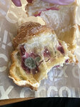 Без комментариев… просто фото… Малиново-миндальный круассан. Теперь не уверена в качестве других изделий, а сегодня же утром (когда покупала круассан) заметила, что в наличии есть еще и боул с красной слабосоленой рыбой. Хорошо, что не купила, иначе с таким набором я бы точно уехала в больницу.