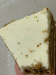 Даже не знаю, как комментировать. Очень люблю морковный торт и помню, что в кофиксе он был вкусный, но сейчас это какой-то шлак. Очень сухой, попадается невкусная сухая морковь кусочками, невкусный. Но ладно бы только это меня смущало. Посмотрите, какой мне отдали. К сожалению, заметила после первой ложки. Его будто роняли, или он долго стоял, запылился, весь в пыли, волосках, просто фу!