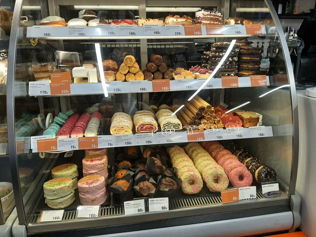 Хорошее сетевое заведение. Всегда два-три человека персонала, поэтому обслуживают достаточно быстро. Из меню беру обычно маффины, роллы с рыбой и капучино. Претензий по качеству и обслуживанию не замечал.