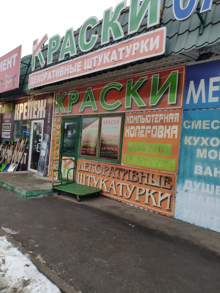 Очень приятные продавцы. Всегда покупаю краску на рынке только в этом павильоне. Красил фасад на даче, краску брал у них. Помогли подобрать цвет. Прошло больше 5 лет, фасады не выцвели, значит, качественные пигменты используют