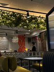 Зал не большой мало посадочных мест но мы спокойно смогли разместится компанией из 5 человек, симпатичный интерьер , эстетичная посуда, кассир-официант вежливая, туалет чистый. Лапша, ролы, чиабатта вкусные. Долгое ожидание, бургеры средние, бекон не дожарен, сами булочки и мясо не горячие и не понятно с чем это связано.