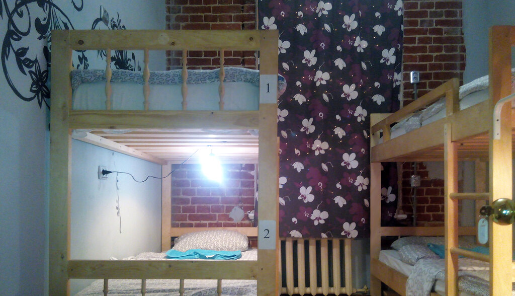 Неплохой хостел. Отличное местоположение, дёшево. Достаточно чисто, хотя некоторые недочёты есть. Есть кухонные принадлежности, фен, много розеток, нормальный вай фай. Пожалуй, единственное чего не хватает - это шкафчики для вещей.