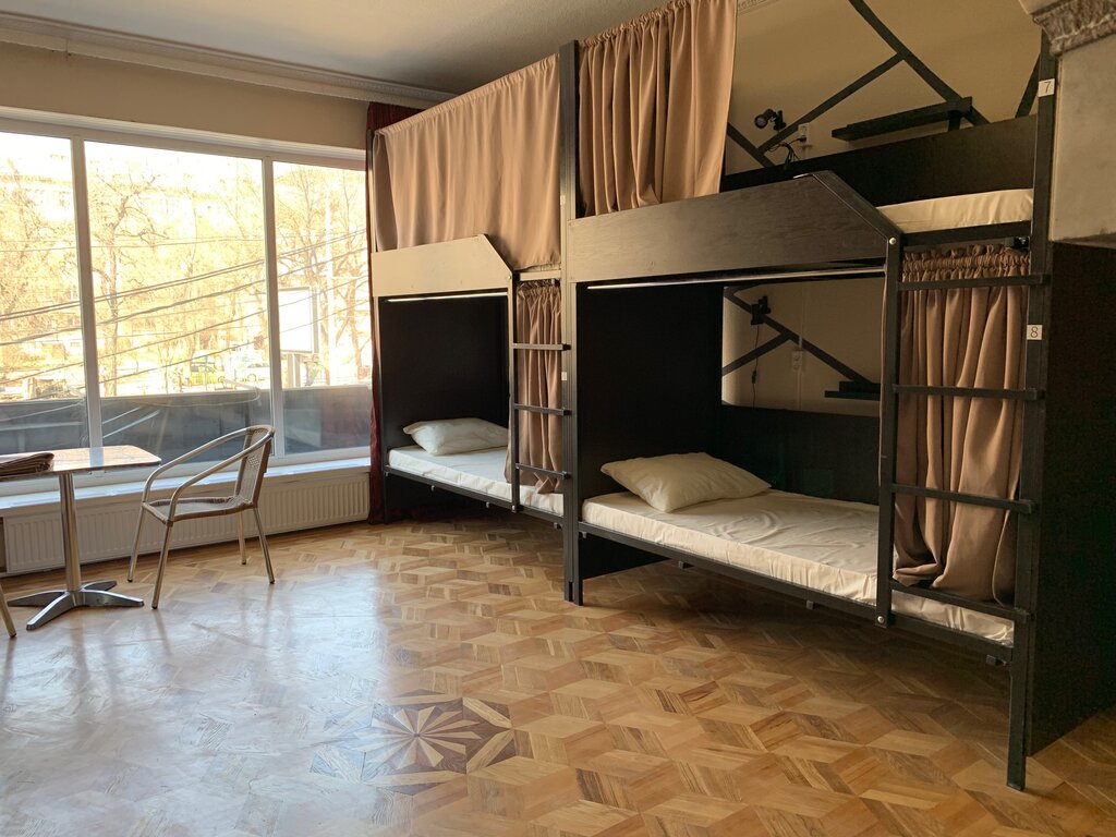 Маленький уютный хостел. Благодаря хозяйке - Ольге, контингент здесь всегда приличный, а атмосфера дружеская. Например, распитие спиртных напитков строго запрещено, а громкая музыка, шум, гам катенорически не приветствуются. Благодаря тому, что номеров немного, ажиотажа ни в общей кухне, ни в душевых, ни в местах гигиены, не возникает. А благодаря культуре поведения постояльцев и ежедневной уборке, всегда царит чистота и прорядок. Есть кухня с плитой, микроволновкой, холодильниками, электрочайником, кулером и довольно широким ассортиментом посуды Смело могу рек эх 9,б
