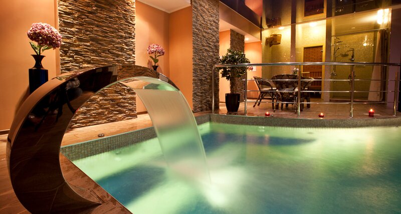 Kind of pool:jacuzzi, whirlpool, hydromassage, waterfall, pool, backlight