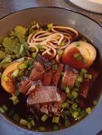 Были проездом, очень хотелось поесть. Красивое, уютное место, вежливо встретили, нашли столик, нам повезло. Очень обаятельный официант, обслуживание на высоте. Приятно удивили цены. Но, еда холодная. Взяли рамен, чуть теплый. Я попросила подогреть, мне погрели в микроволновке наверное, недогрели. И блюдо не доработано, вкусно только говядина и яйцо. Второе блюдо принесли вместе с первым, и тоже чуть тёплое. Надо думать, что второе блюдо нужно приносить после первого. Впечатление испорчено. Вкусный десерт Чёрный кот, браво повару, отличные настойки.