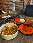 Приходили с коллегами на обед. Посадка зала была менее 50%, но все блюда готовились более 30 минут и приносили по очереди и в итоге мы смотрели как кушает другой, через час уже кто-то пил чай с десертом, а кому-то принесли только суп. Часть из заказанного вообще не принесли, пояснив, что забыли. Вся еда по вкусу была одинаковой и не вкусной из-за сильного запаха из кальяной