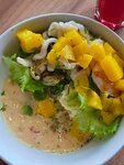 Стол бронировали за 5 дней, по телефону девушка подтвердила бронь - стол с диванами возле окна, по итогу посадили нас за стол со стульями возле стены. Суп гороховый принесли без мяса, по дополнительному запросу мяса положили. Суп пустой и очень жидкий, много вареного репчатого  лука(лук был непассерованный). Салат, удон и тяхан - вкусно. Десерт - очень вкусно. Блюда выносили быстро и одновременно. Только про десерт забыли, поэтому его пришлось немного подождать. В целом понравилось.