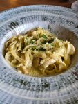 Почитал отзывы и видимо посещение данного кафе — лотерея, в которой мы явно сорвали джекпот. Во-первых, шикарное и незабываемое обслуживание от милой девушки Тамары. Всегда была рядом, консультировала и убирала пустую посуду. Было очень приятно, когда она сообщила, что у них остался последний паннакотик и возможно мы захотим его заказать, а подруга как раз его хотела попробовать и пришла ради него. Во-вторых, крайне быстро выносили все блюда и всё было очень вкусно. Ел брускетту вителло тоннато, цезарь с креветками и пасту с лисичками. Топ! Десерт с морковкой в горшочке — милый! Мы с друзьями остались довольны проверенным здесь вечером. Фото остались только такие 😁