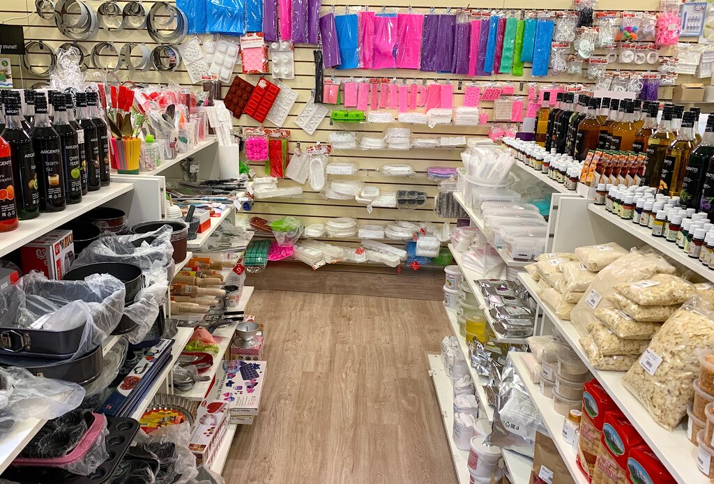 Отличный магазин! Всё, что нужно есть ! Удобное расположение! Вежливый персонал, подскажет, покажет !!))Красители сливки, шоколад, какао, насадки...упаковка ленточки, короче достаточно всего чтоб порадовать домашних и близких)))